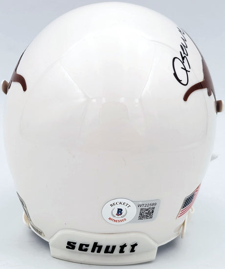 Quinn Ewers Autographed Texas Longhorns White Schutt Mini Helmet Beckett BAS QR Stock #201715