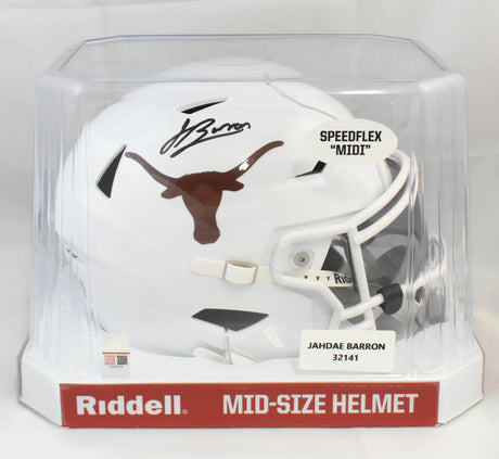 Very low stock (1 unit)$109Unit price /UnavailableJahdae Barron Signed Texas Longhorns Mid-Size SpeedFlex Helmet - Beckett W Holo