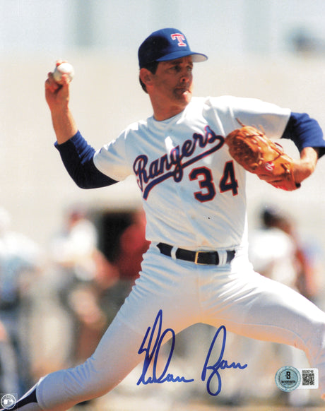 Nolan Ryan Autographed 8x10 Photo Texas Rangers Beckett BAS QR #BS36748
