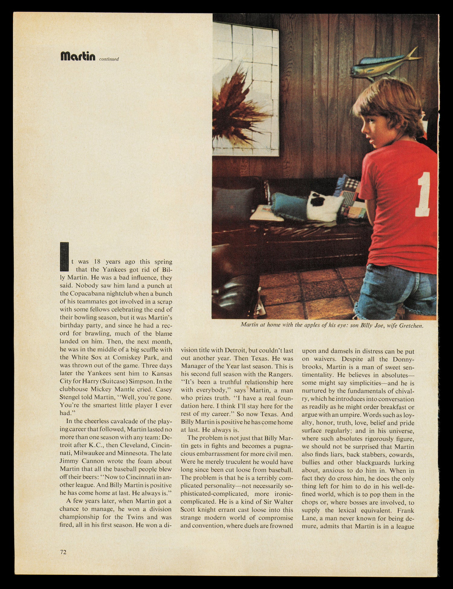 Billy Martin Autographed 8.5x11.5 Magazine Page Photo Texas Rangers Beckett BAS #AD43471