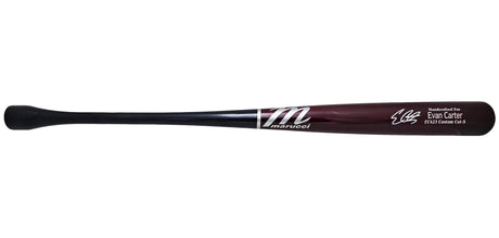 Evan Carter Autographed Red Marucci Player Model Bat Texas Rangers Beckett BAS Witness Stock #217966