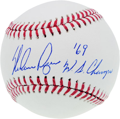 Nolan Ryan Autographed Official MLB Baseball Texas Rangers "69 WS Champs" Beckett BAS Stock #201277