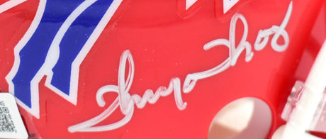 Thurman Thomas Autographed Buffalo Bills Lunar Speed Mini Helmet- Beckett W *Red