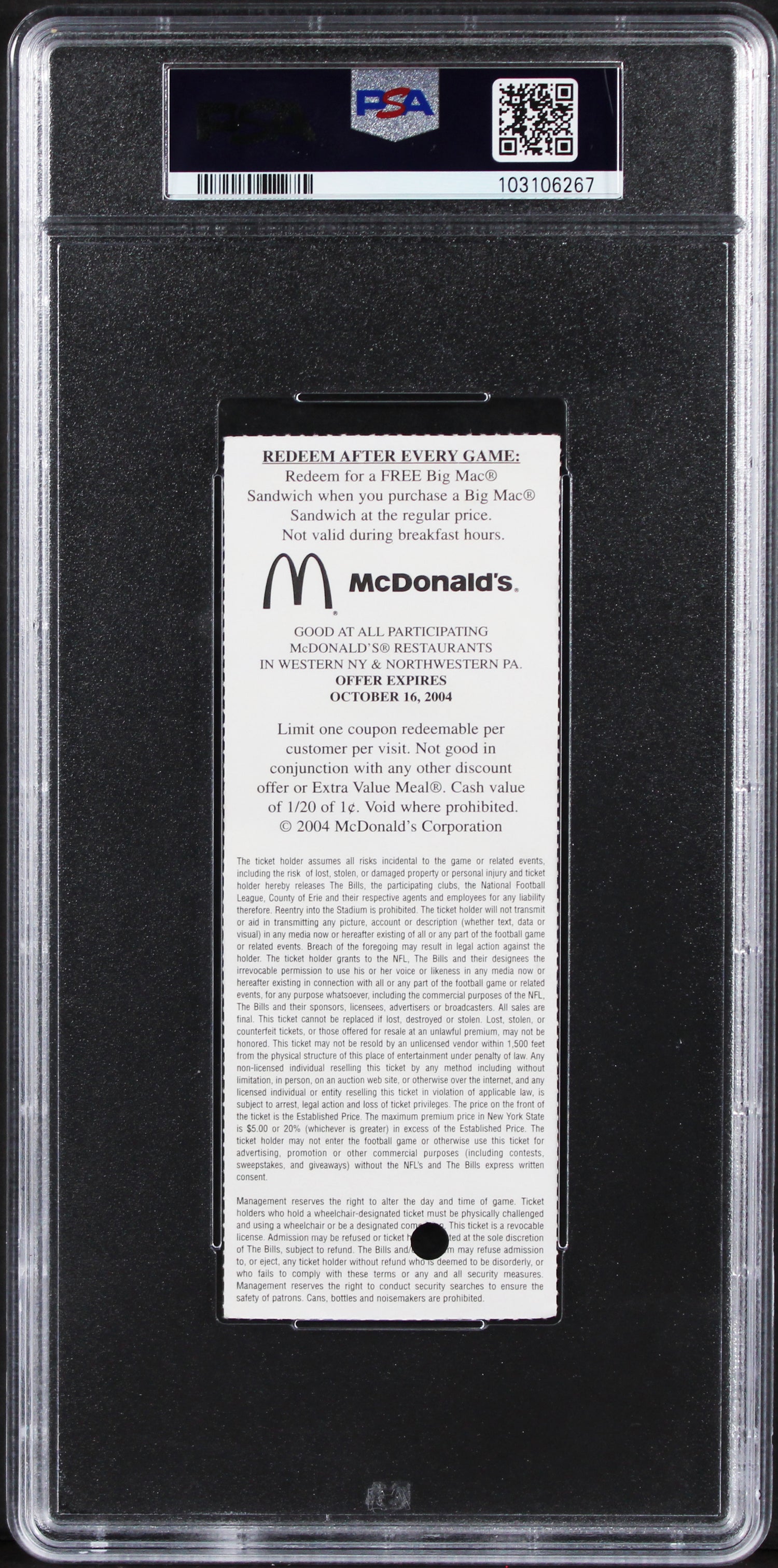- Original ticket stub from the historic October 3, 2004 game: Buffalo Bills vs. New England Patriots