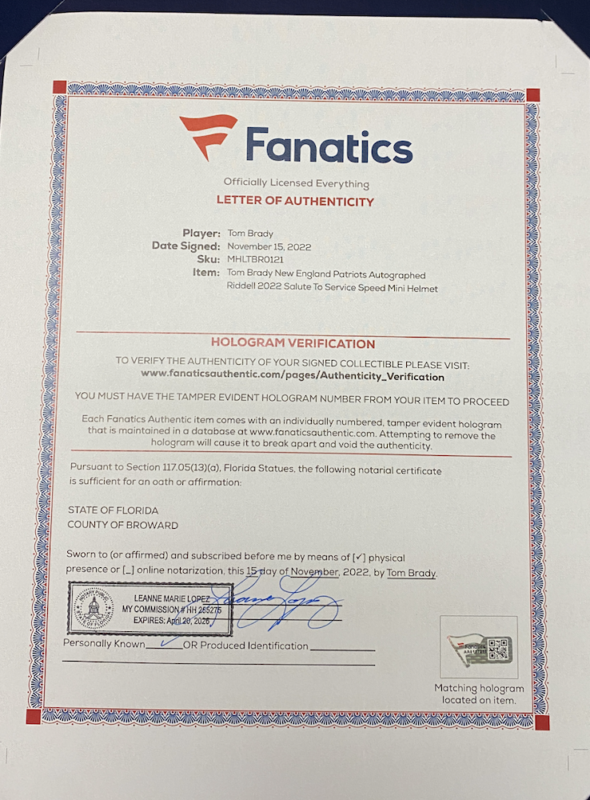 Tom Brady Autographed New England Patriots 2022 Salute to Service Speed Mini Helmet Fanatics is backordered and will ship as soon as it is back in stock.