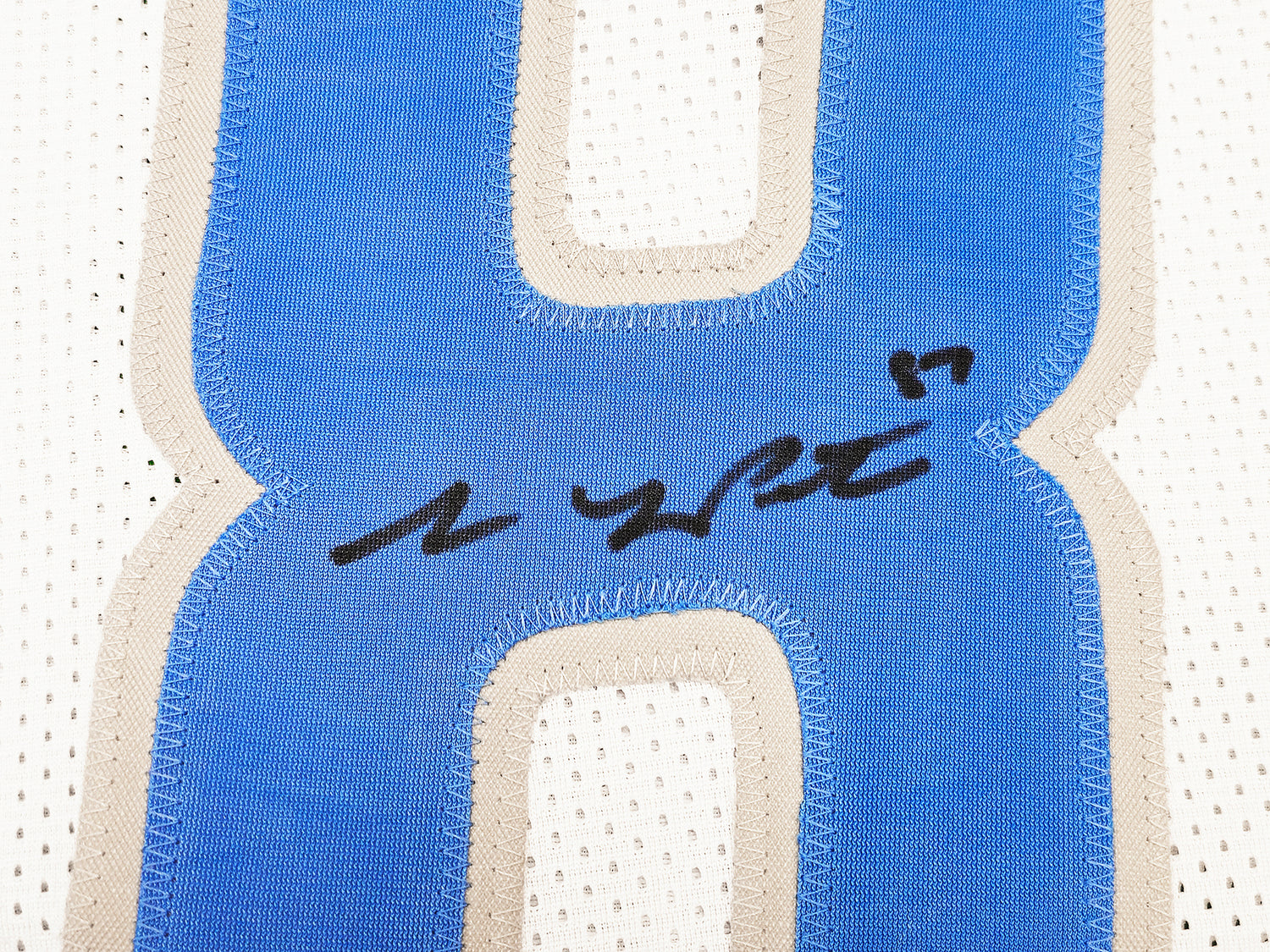 This white custom jersey has been hand-signed by Sam LaPorta, making it a must-have for football fans and collectors. Designed for display, this XL jersey features professionally sewn-in name and numbers, ensuring an authentic look and feel. While it is not associated with any official brand, it is a high-quality tribute to this rising star.