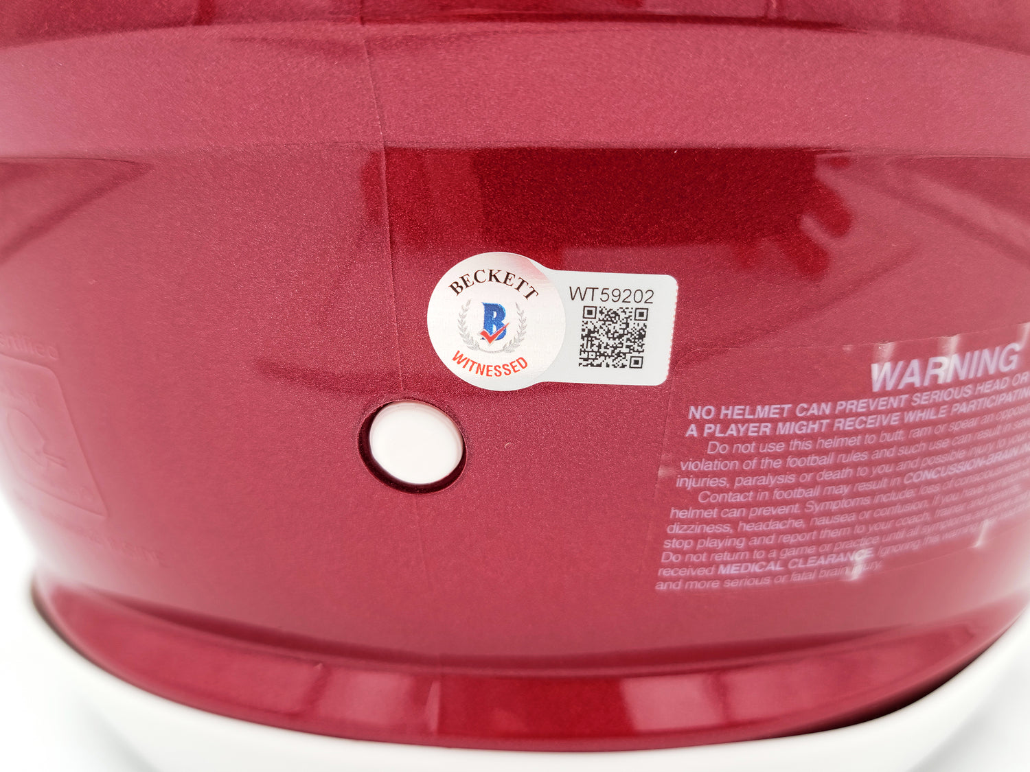 Own a piece of USC Trojans history with this USC Trojans Maroon Full-Size Authentic Speed Helmet, hand-signed by star wide receiver Drake London. A standout talent at USC, London’s dominance on the field made him a top NFL prospect, making this autographed helmet a valuable collectible for fans and investors alike.