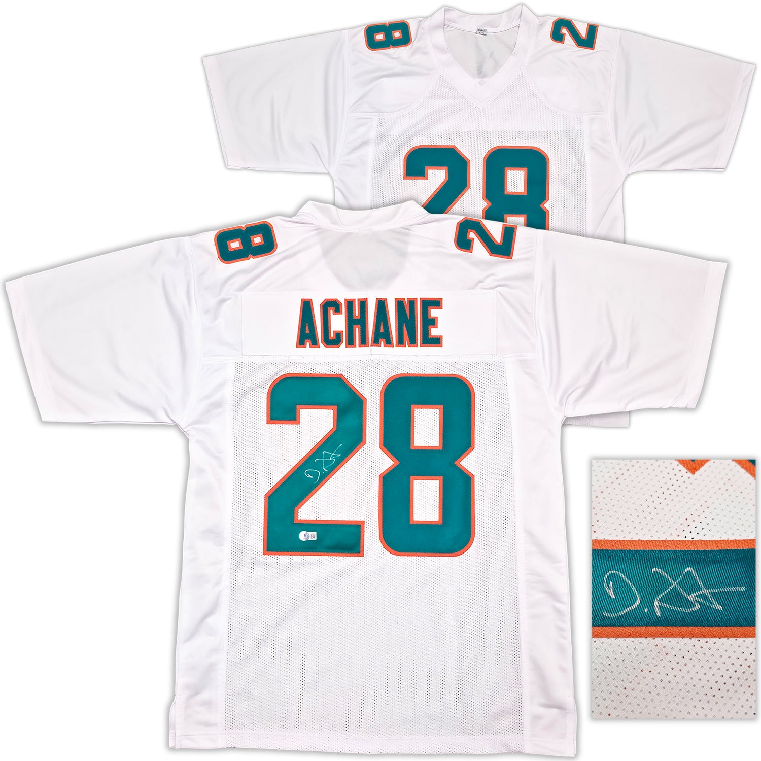 Celebrate the rising stardom of Miami Dolphins running back De'Von Achane with this exclusive signed White Custom Jersey. A standout talent in the NFL, Achane has quickly made waves with his electrifying speed and dynamic plays, making this autographed piece a must-have for fans and collectors alike. Whether you're building your NFL memorabilia collection or honoring one of football's brightest young stars, this jersey brings authenticity and passion to your display.