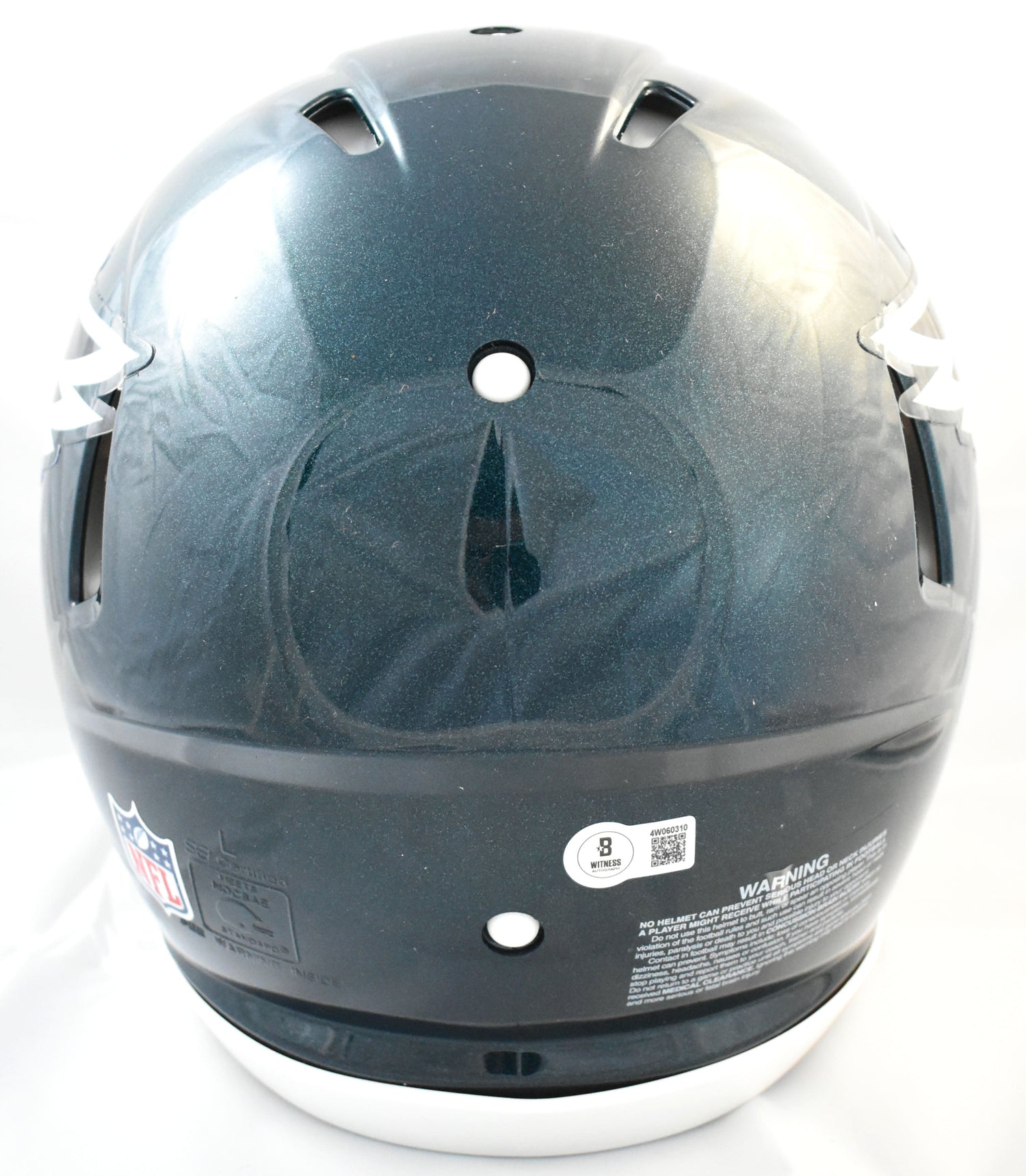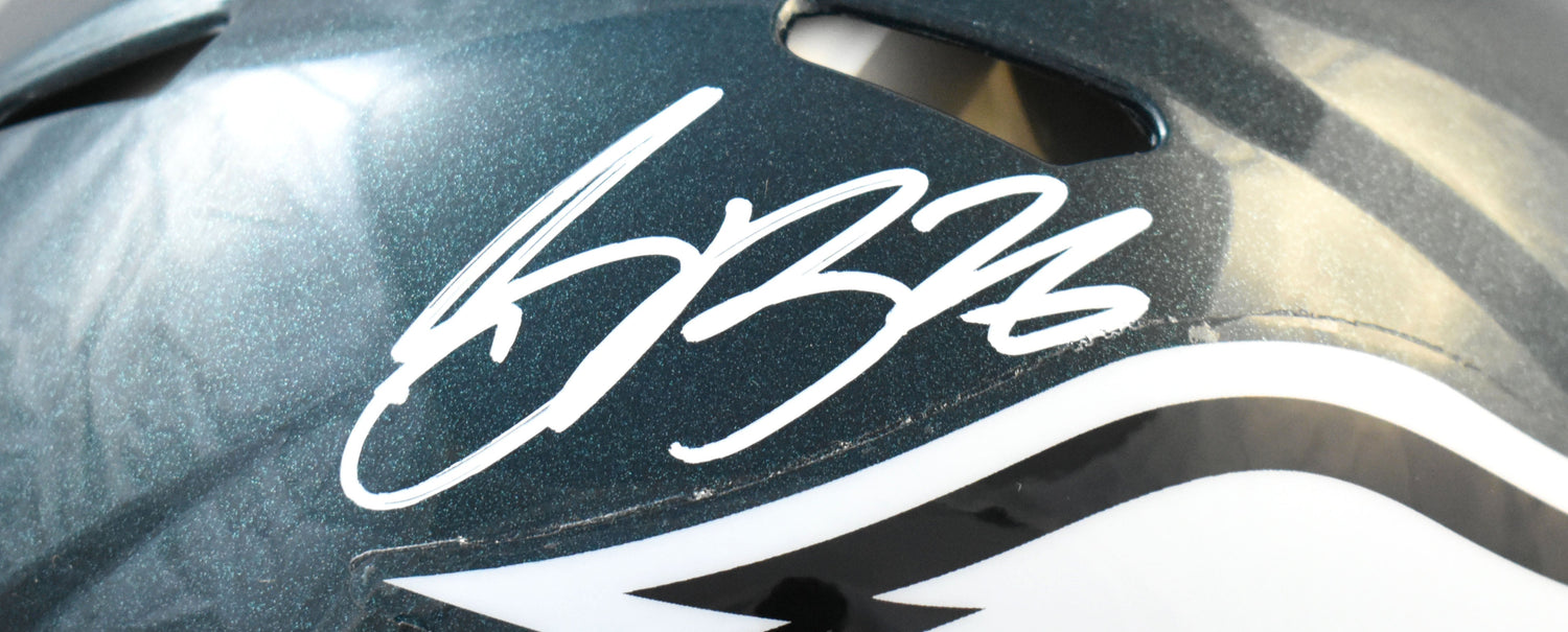 Show off your Eagles pride with this Saquon Barkley Philadelphia Eagles Autographed Riddell Full Size Speed Authentic Helmet, a must-have for fans and serious collectors alike. Though Barkley made a name for himself with the New York Giants, his move to the Philadelphia Eagles has generated major buzz, making this signed helmet both a timely and valuable collectible. Authenticated by Beckett Witnessed Authentication, this piece ensures long-term value and peace of mind with a numbered hologram and scannable QR code verifying the autograph’s authenticity and sign location/date information. Whether displayed in a fan cave, office, or memorabilia showcase, this helmet captures a significant moment in recent NFL history.