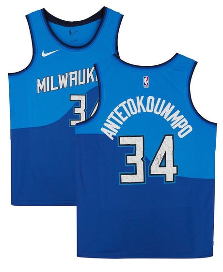 $109Unit price /UnavailableGIANNIS ANTETOKOUNMPO Autographed Milwaukee Bucks Blue Nike City Edition Swingman Jersey FANATICS