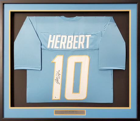 Los Angeles Chargers Justin Herbert Autographed Framed Powder Blue Jersey Beckett BAS Stock #191176