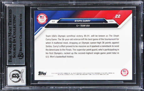 Very low stock (1 unit)$1,149Unit price /UnavailableWarriors Steph Curry Signed 2024 Topps Olympic Games #22 Card Auto 10! BAS Slab