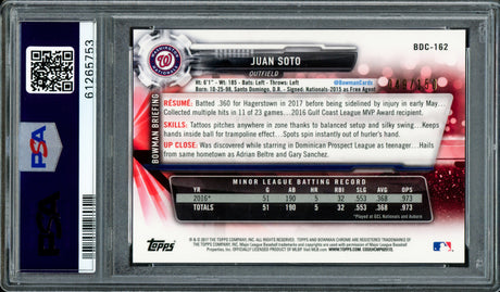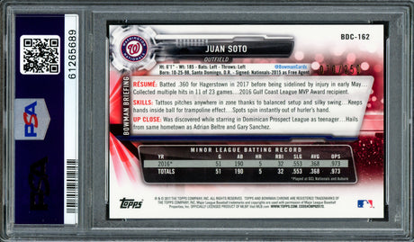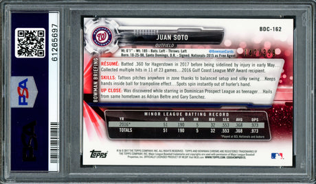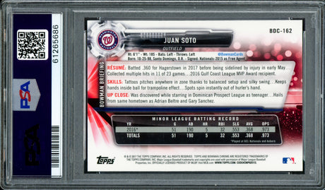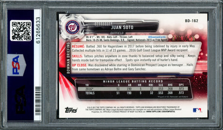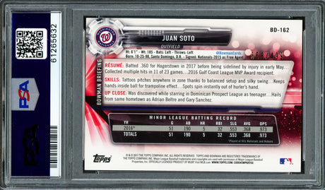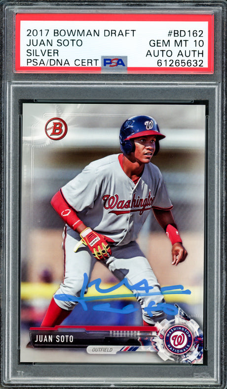 Juan Soto Autographed 2017 Bowman Draft Rookie Card #BDC162 New York Mets PSA 10 PSA/DNA #61265637
