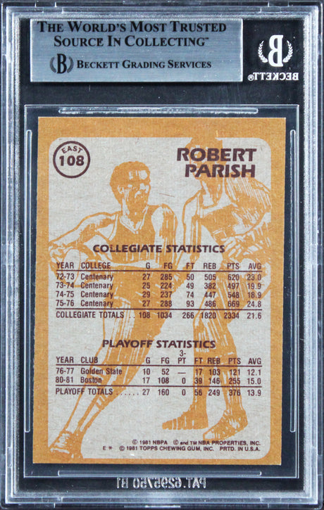 Celtics Robert Parish Authentic 1981 Topps #E108 Card Autographed BAS Slabbed 2