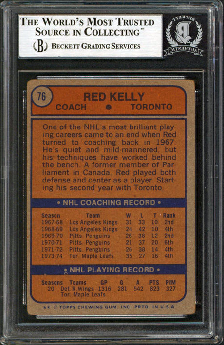 Very low stock (1 unit)$959Unit price /Unavailable Maple Leafs Red Kelly Authentic Signed 1974 Topps #76 Card BAS Slabbed