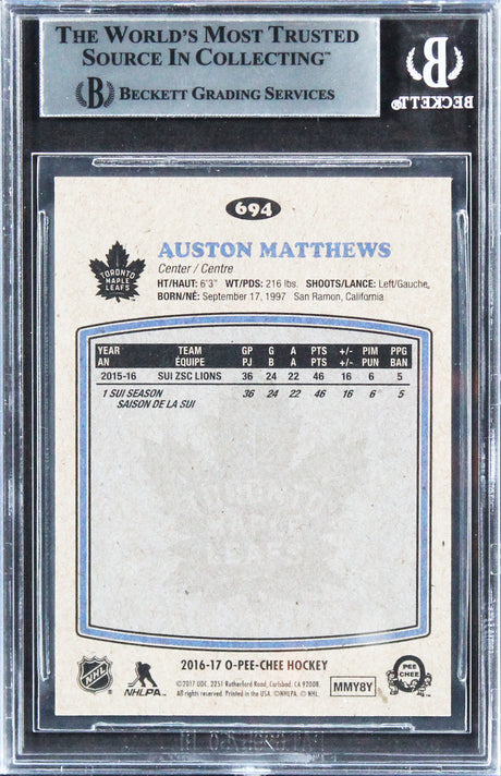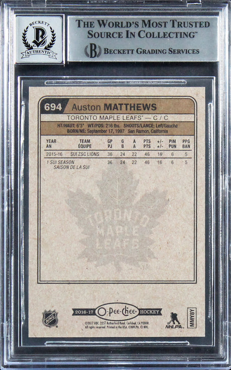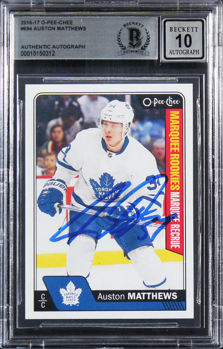 Maple Leafs Auston Matthews Signed 2016 O-Pee-Chee #694 RC Card Auto 10 BAS Slab