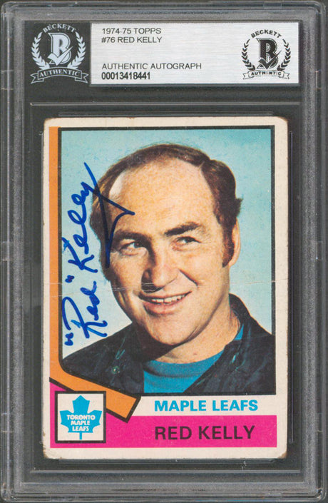 Very low stock (1 unit)$1,019Unit price /Unavailable Maple Leafs Red Kelly Authentic Signed 1974 Topps #76 Card BAS Slabbed