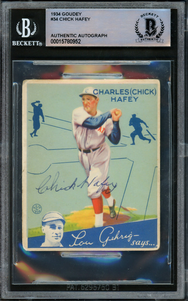 Chick Hafey Autographed 1934 Goudey Rookie Card #34 Cincinnati Reds Beckett BAS #15780952