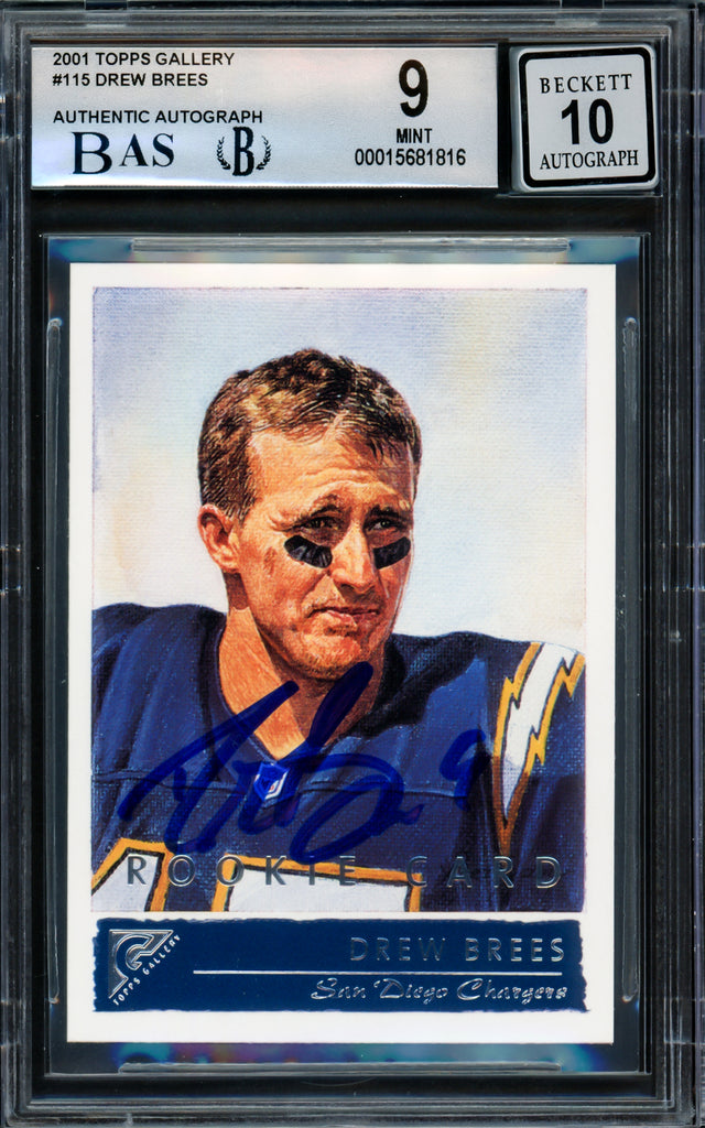 Drew Brees Autographed 2001 Topps Gallery Rookie Card #115 San Diego Chargers BGS 9 Auto Grade Gem Mint 10 Beckett BAS #15681816