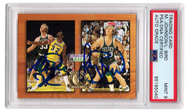 Larry Bird & Magic Johnson Signed Celtics / Lakers 1994 NBA Hoops Card (5th Anniversary) #MB1 - (PSA Encapsulated / Auto Grade 9)