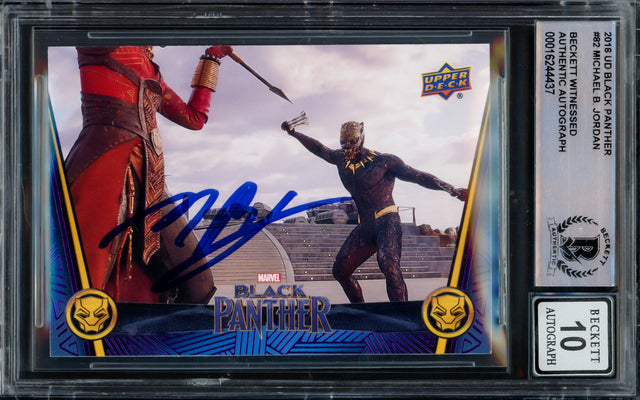 Michael B. Jordan Autographed 2018 Upper Deck Black Panther Card #82 Marvel Auto Grade Gem Mint 10 Beckett BAS #16244437