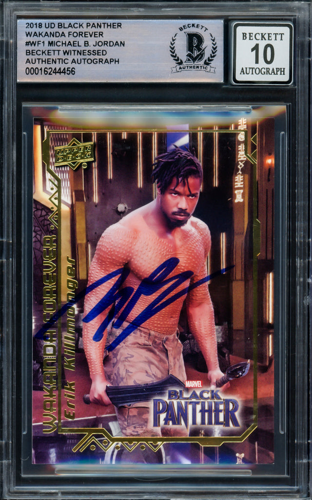 Michael B. Jordan Autographed 2018 Upper Deck Black Panther Wakanda Forever Card #WF1 Marvel Auto Grade Gem Mint 10 Beckett BAS Stock #224176