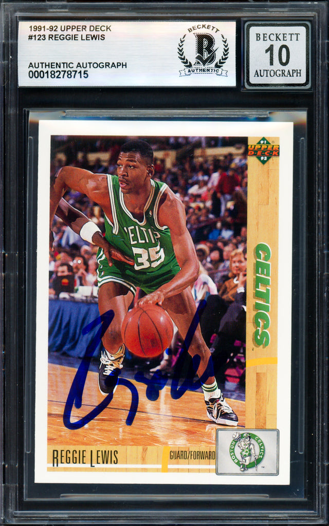 Reggie Lewis Autographed 1991-92 Upper Deck Card #123 Boston Celtics Auto Grade Gem Mint 10 Beckett BAS #18278715