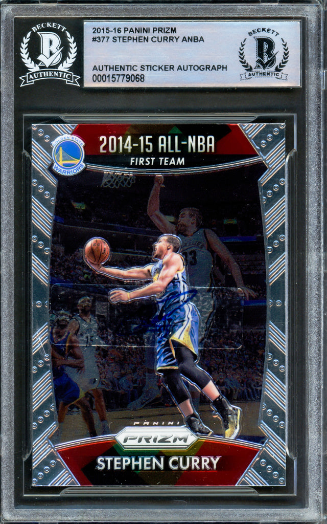 Stephen Curry Autographed 2015-16 Panini Prizm Card #377 Golden State Warriors Beckett BAS #15779068 is backordered and will ship as soon as it is back in stock.