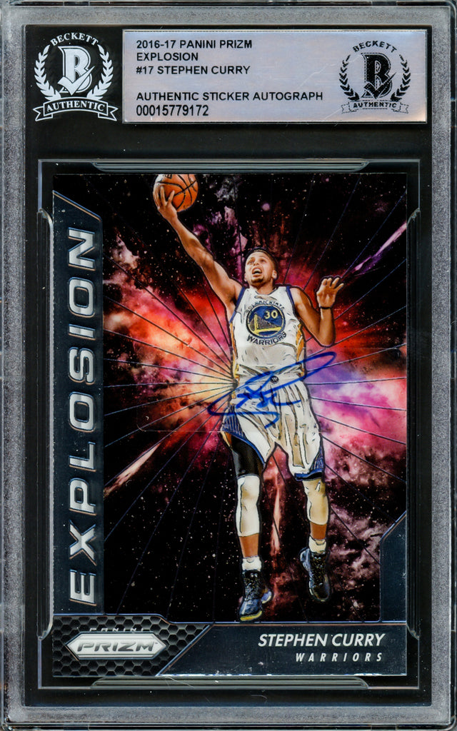 Stephen Curry Autographed 2016-17 Panini Prizm Explosion Card #17 Golden State Warriors Beckett BAS #15779172