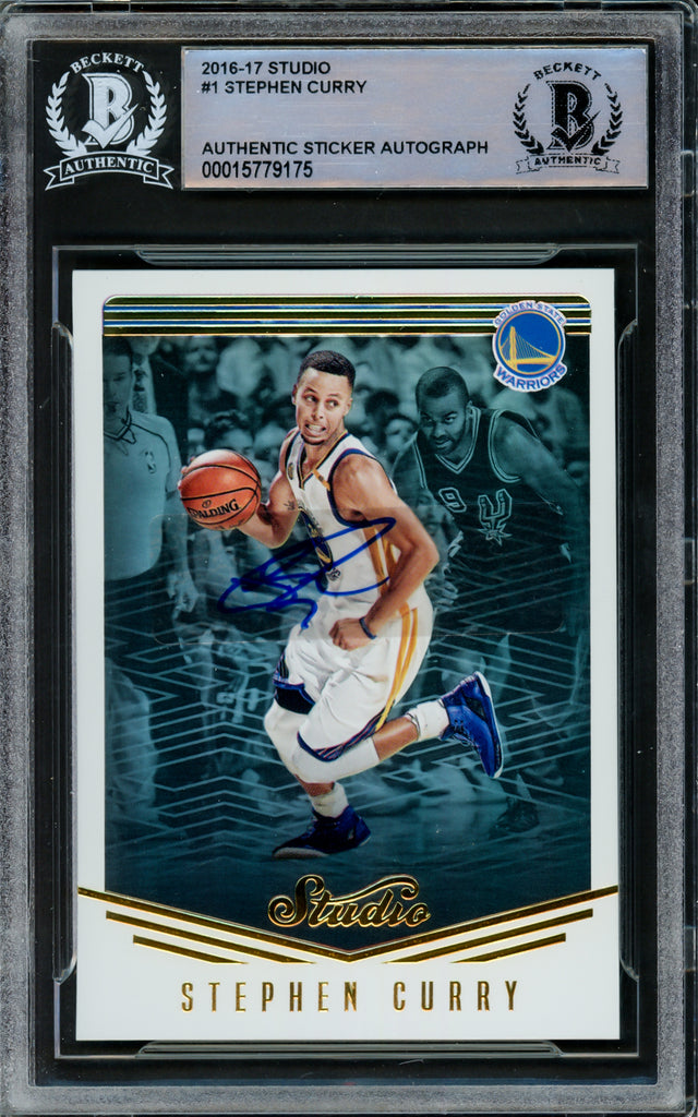 Stephen Curry Autographed 2016-17 Panini Studio Card #1 Golden State Warriors Beckett BAS #15779175