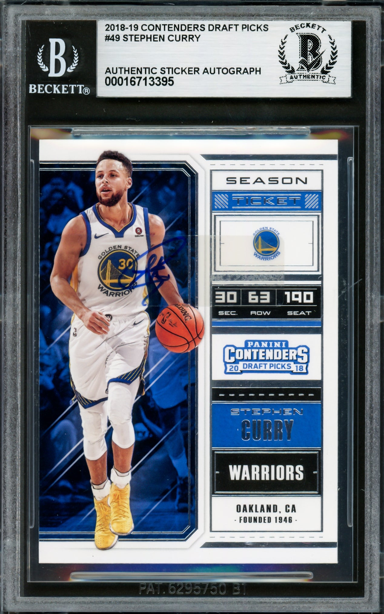 Stephen Curry Autographed 2018-19 Playoff Contenders Draft Picks Card #49 Golden State Warriors Beckett BAS #16713395