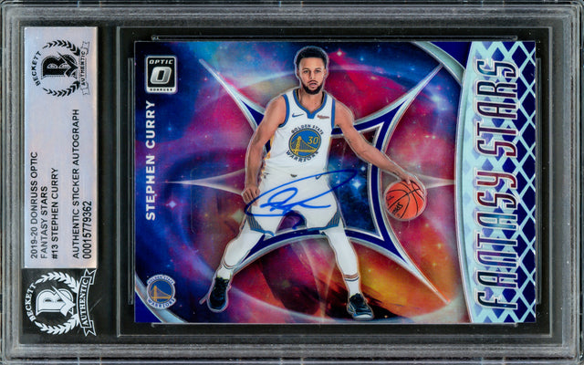 Stephen Curry Autographed 2019-20 Donruss Optic Fantasy Stars Card #13 Golden State Warriors Beckett BAS #15779362