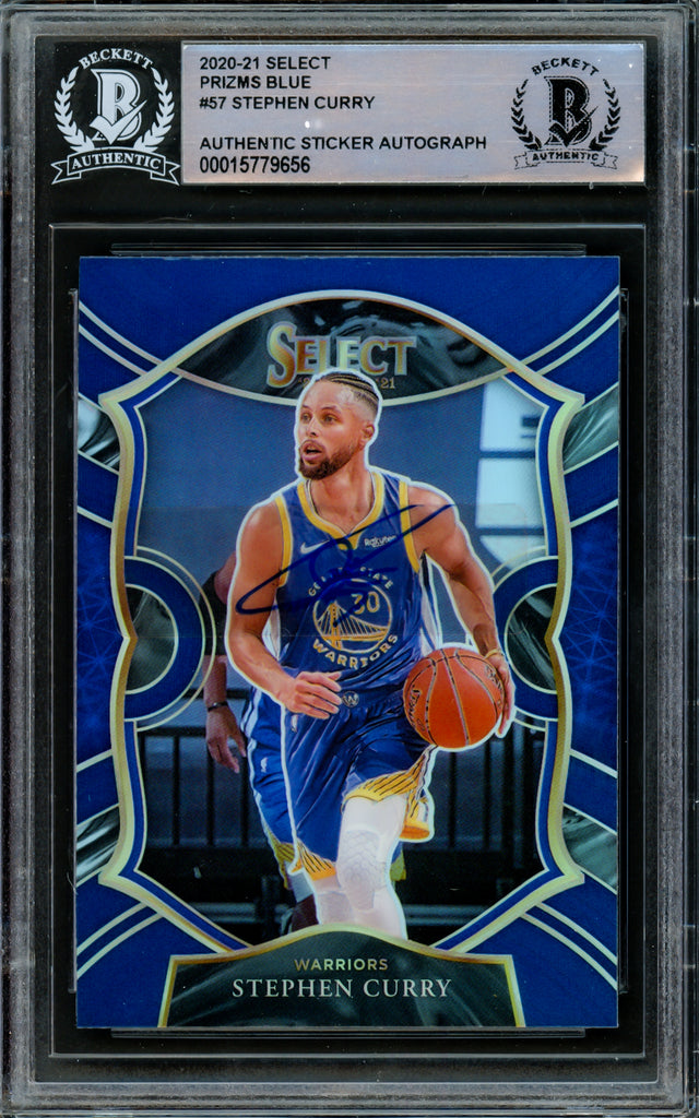 Stephen Curry Autographed 2020-21 Panini Select Blue Prizm Card #57 Golden State Warriors Beckett BAS #15779656