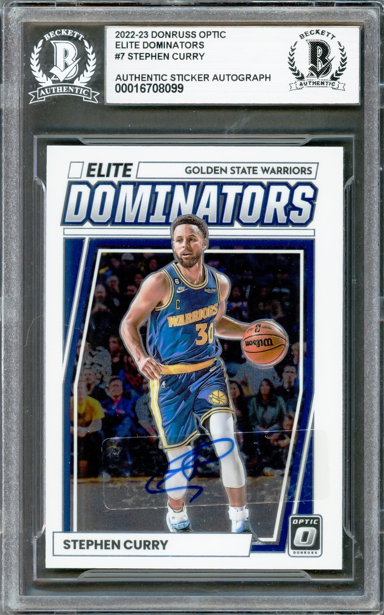Stephen Curry Autographed 2022-23 Donruss Optic Elite Dominators Card #7 Golden State Warriors Beckett BAS #16708099