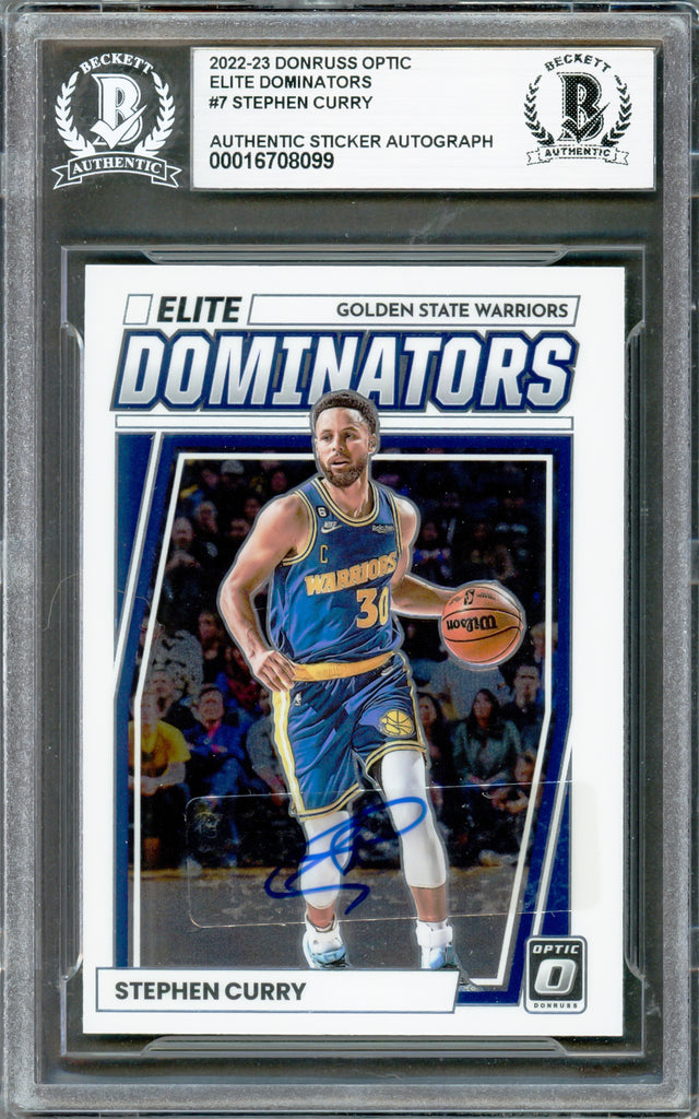 Stephen Curry Autographed 2022-23 Donruss Optic Elite Dominators Card #7 Golden State Warriors Beckett BAS #16708099 is backordered and will ship as soon as it is back in stock.