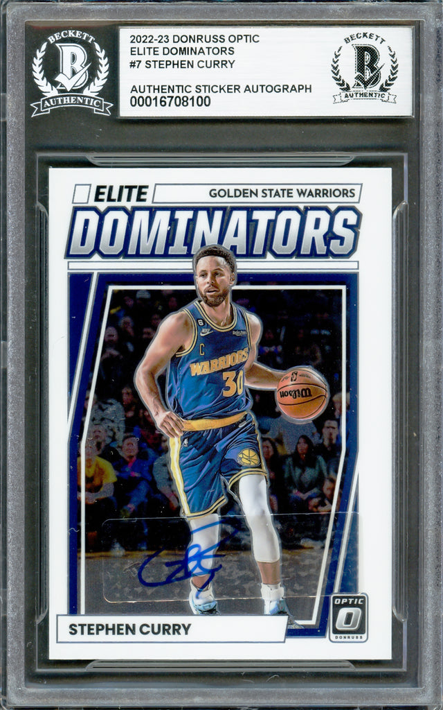 Stephen Curry Autographed 2022-23 Donruss Optic Elite Dominators Card #7 Golden State Warriors Beckett BAS #16708100 is backordered and will ship as soon as it is back in stock.