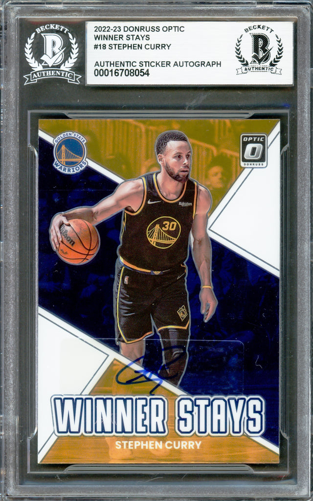 Stephen Curry Autographed 2022-23 Donruss Optic Winner Stays Card #18 Golden State Warriors Beckett BAS #16708054
