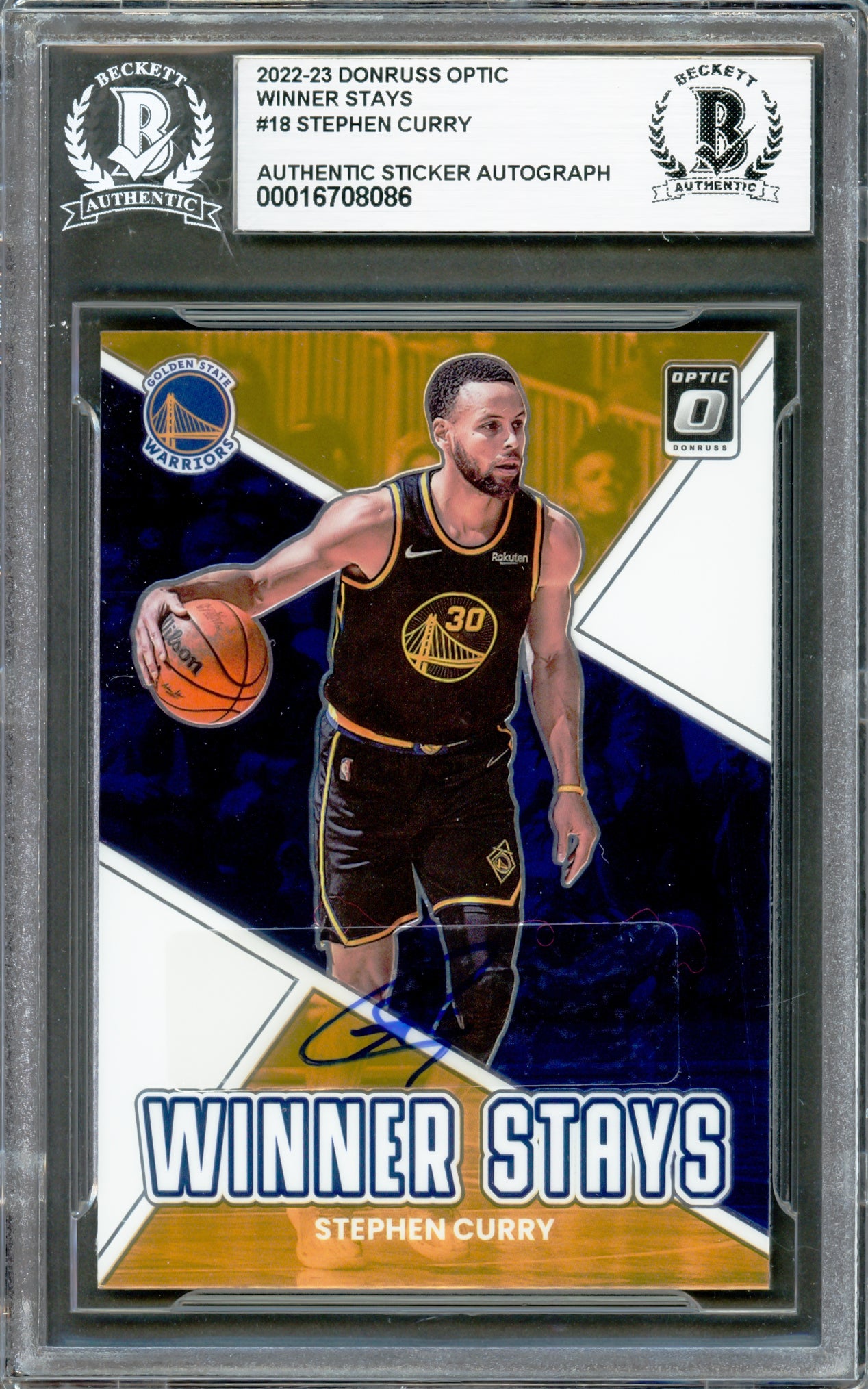 Stephen Curry Autographed 2022-23 Donruss Optic Winner Stays Card #18 Golden State Warriors Beckett BAS #16708086