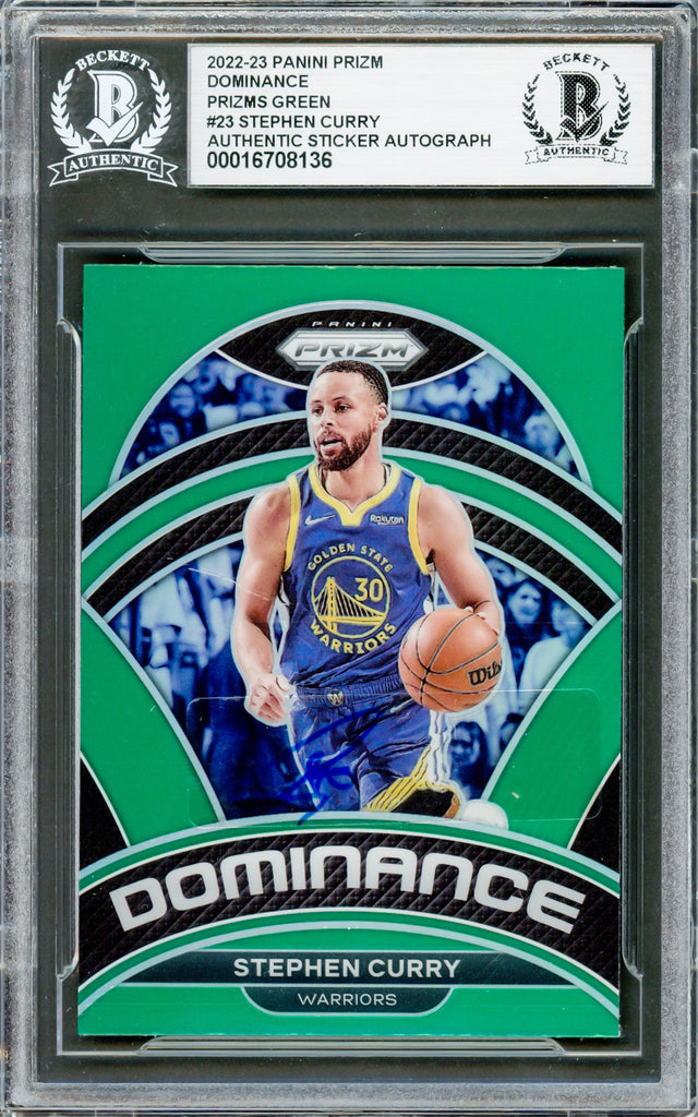 Stephen Curry Autographed 2022-23 Panini Prizm Green Dominance Card #23 Golden State Warriors Beckett BAS #16708136