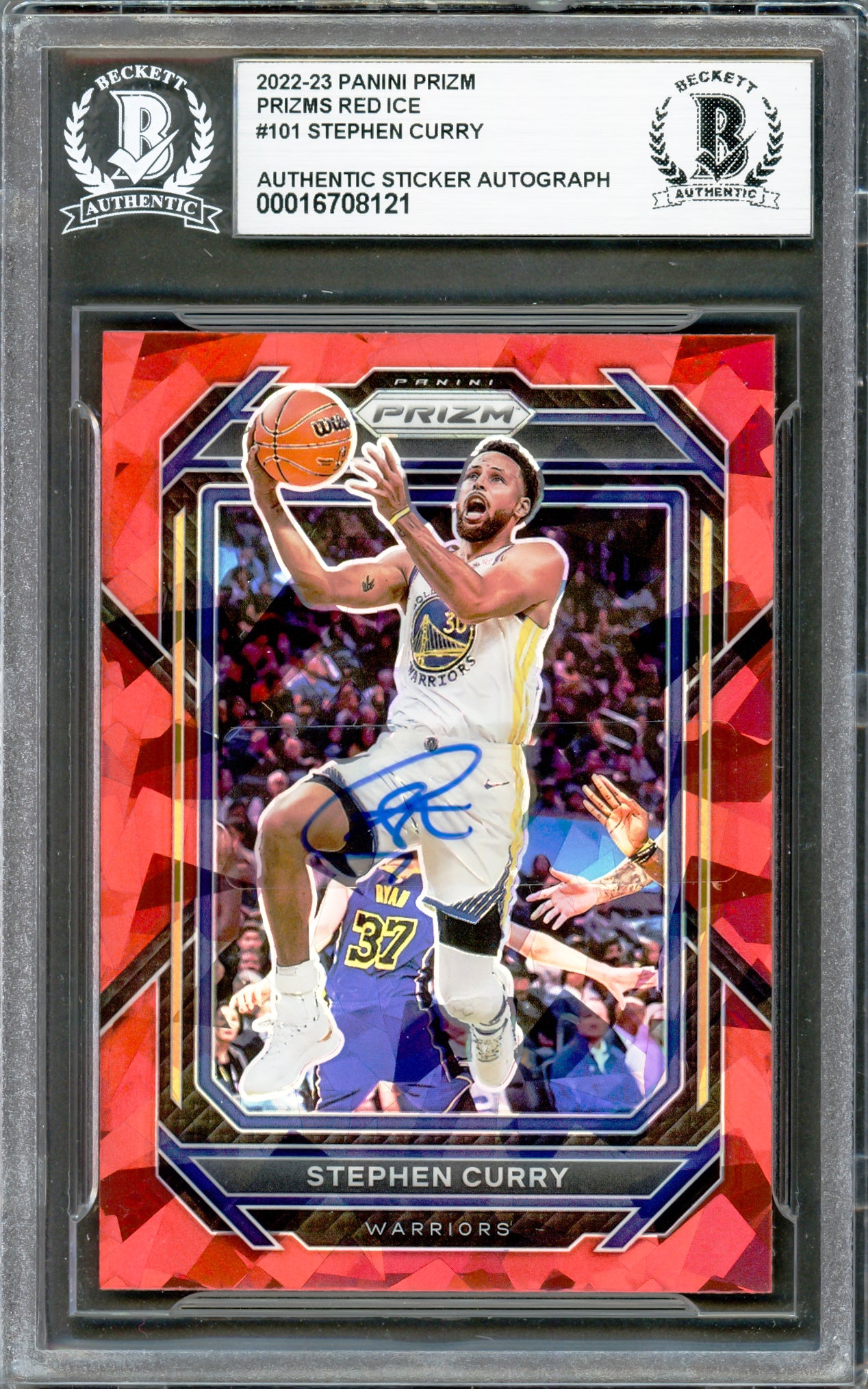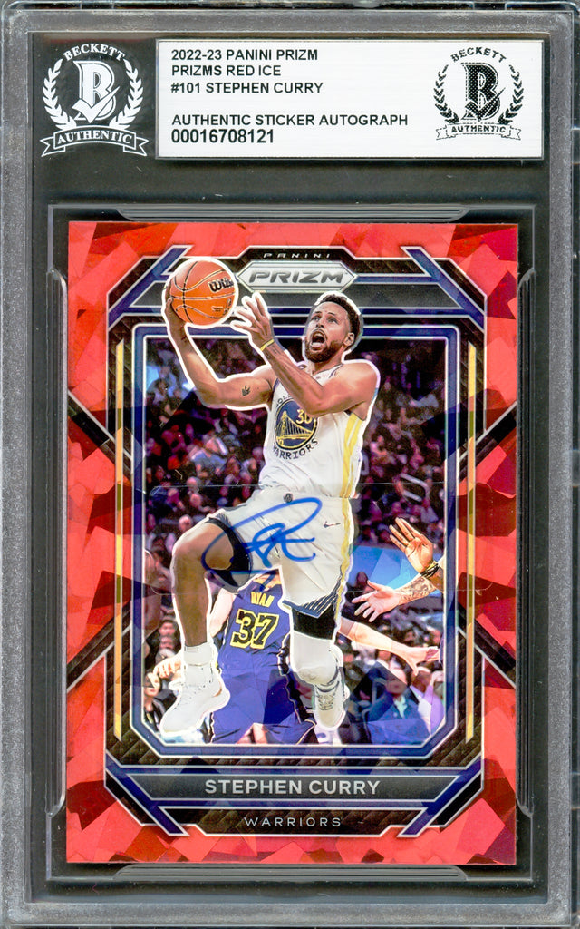 Stephen Curry Autographed 2022-23 Panini Prizm Red Ice Card #101 Golden State Warriors Beckett BAS #16708121 is backordered and will ship as soon as it is back in stock.