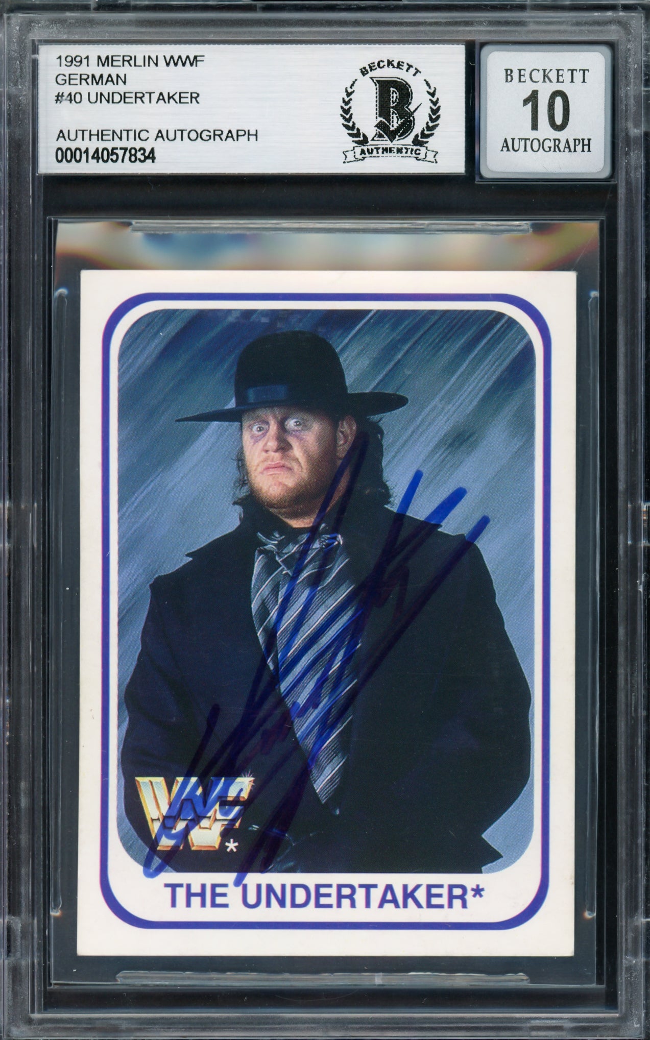 Undertaker Autographed 1991 Merlin WWF German Rookie Card #40 Auto Grade Gem Mint 10 Beckett BAS #14057834