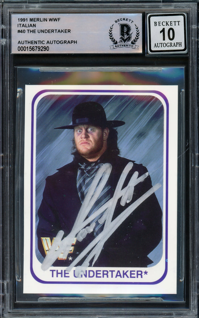 Undertaker Autographed 1991 Merlin WWF Italian Rookie Card #40 Auto Grade Gem Mint 10 Beckett BAS #15679290