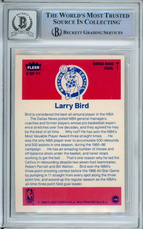 1986-87 Fleer Stickers #2 Larry Bird Boston Celtics BGS Autograph 10