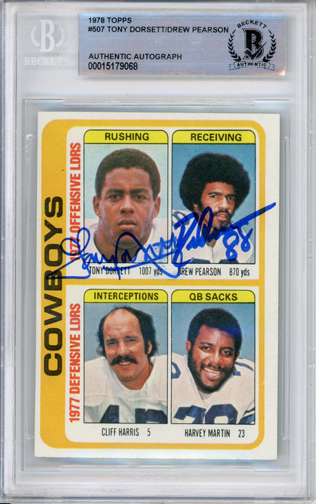 1978 Topps Team Checklist #507 Tony Dorsett RC / Drew Pearson Cowboys BGS Auto
