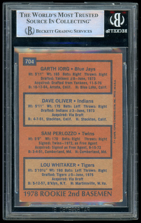 1978 Topps #704 Lou Whitaker, Dave Oliver, Sam Perlozzo, Garth Lorg RC BGS Auto