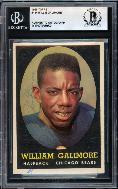 Very low stock (1 unit)$449Unit price /UnavailableWillie Galimore Autographed 1958 Topps Rookie Card #114 Chicago Bears Beckett BAS #17068952