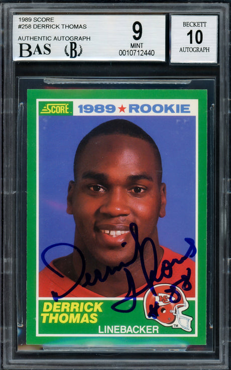 Lions Barry Sanders "HOF 04" Signed 1989 Score #257 Rookie Card Auto 10 BAS Slab