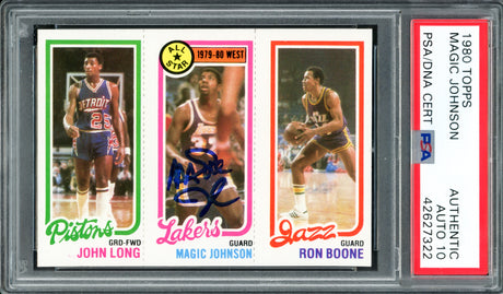 Bird, Erving & Magic Signed 1996 Topps Stars Reprints #8 Card Auto 10! BAS Slab