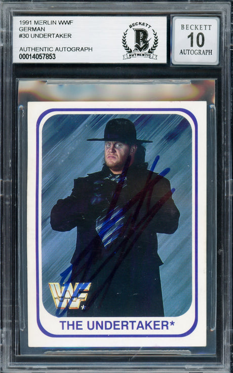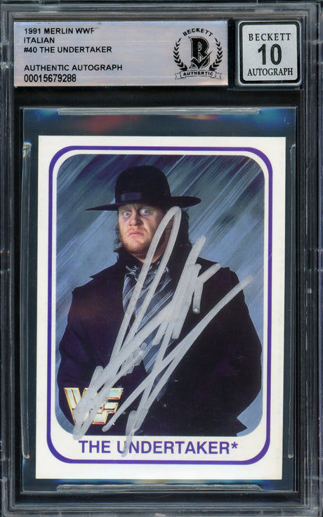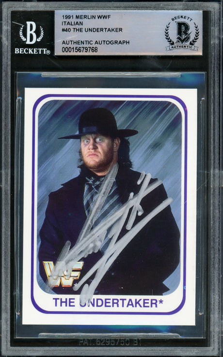 Undertaker Autographed 1991 Merlin WWF Italian Rookie Card #40 Beckett BAS #15679768