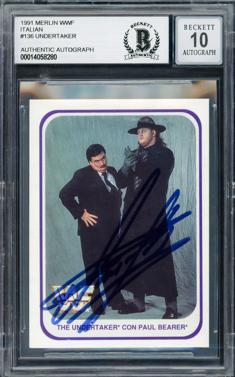 Undertaker Autographed 1991 Merlin WWF Italian Rookie Card #136 Beckett BAS #15679784
